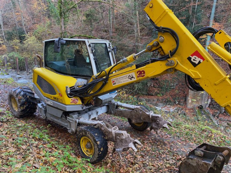 – Traction hydrostatique 2 roues motrices par les deux grandes roues – Pattes télescopiques hydrauliques – Direction arrière hydraulique (M325) – Poids sans outils M320: 8500 kg – Poids sans outils M325: 8800 kg,Huile bio ,Homologation Route ,treuil 8 to
